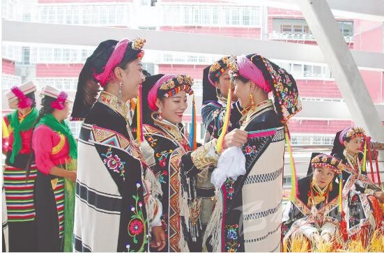 在候場(chǎng)區(qū),暫時(shí)還未上場(chǎng)的演員們或聚在一起捧著手機(jī)看現(xiàn)場(chǎng)直播,或相互整理妝發(fā),或在角落一次次重溫舞蹈動(dòng)作、調(diào)整表情,力求把最完美的姿態(tài)展示在舞臺(tái)上,還有的則是呼朋引伴合影留念。“這是個(gè)值得紀(jì)念的日子。”得榮縣陳智文說,正因如此,大伙兒才分外珍惜,希望用照片記錄下這次難得的經(jīng)歷。
