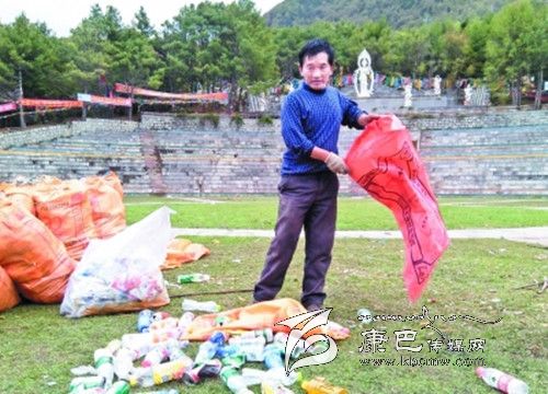 5月6日是康定縣一年一度“四月八”跑馬山國(guó)際轉(zhuǎn)山會(huì),上萬人在跑馬山上祈福游玩。5月7日在一家爆料網(wǎng)站上一位網(wǎng)友發(fā)布了一篇名為《甘孜康定跑馬山萬人轉(zhuǎn)山會(huì)后垃圾遍野》的微博。微博原文中說:“2014年05月06日,四川省甘孜藏族自治州,滿負(fù)荷的垃圾桶。跑馬山景區(qū)垃圾遍野。當(dāng)天是農(nóng)歷四月八轉(zhuǎn)山會(huì),景區(qū)免門票,至少有上萬游客涌入景區(qū),參加轉(zhuǎn)山會(huì)活動(dòng)。”針對(duì)該網(wǎng)友爆料的情況記者走訪了康定跑馬山景區(qū)。在景區(qū)現(xiàn)場(chǎng)記者的確見到大量的垃圾“橫尸遍野”。藍(lán)天白云、青青草地真可謂詩情畫意,可是眼前的美景卻被無數(shù)的垃圾破壞。不知何時(shí)起旅游、垃圾仿佛成了連體嬰兒,甩也甩不掉,什么時(shí)候長(zhǎng)假、旅游與垃圾才能隔離開來呢?帶著疑問記者采訪了景區(qū)相關(guān)負(fù)責(zé)人。