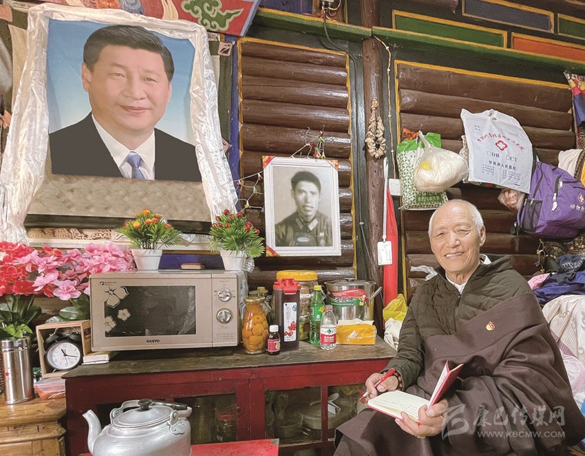 “這本上世紀(jì)60年代印的藏文版毛主席語錄,我不知道翻了多少遍,都快要翻爛了?!比A發(fā)蒼顏,中氣十足的多加對記者笑言:“我從小是‘娃子’,根本認(rèn)不到字,不管是藏漢文;但我現(xiàn)在能流利地讀寫藏文,全是藏民團(tuán)里會藏文的漢族戰(zhàn)友教的;更有意思的是,我的漢話是藏民團(tuán)里會說四川話的藏族戰(zhàn)友教的!”