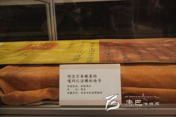 據(jù)介紹,明成祖永樂十一年封誥為國家一級(jí)文物,系明永樂帝成祖朱棣于明永樂十一年(1413)敕封噶瑪噶舉楚布寺第二世司徒活佛曲吉降村為“灌頂圓通妙濟(jì)國師”時(shí)頒賜。那是一份來自600年前的古老信息,也是一份見證中國千百年來民族團(tuán)結(jié)、祖國統(tǒng)一的誥文。誥文清楚的記述了“永樂盛世”中甘孜人民在華夏大家庭中的和諧與共,也把宣德年間明朝文化,經(jīng)濟(jì)繁榮階段中康巴文化的不可或缺緊密的聯(lián)系在一起。