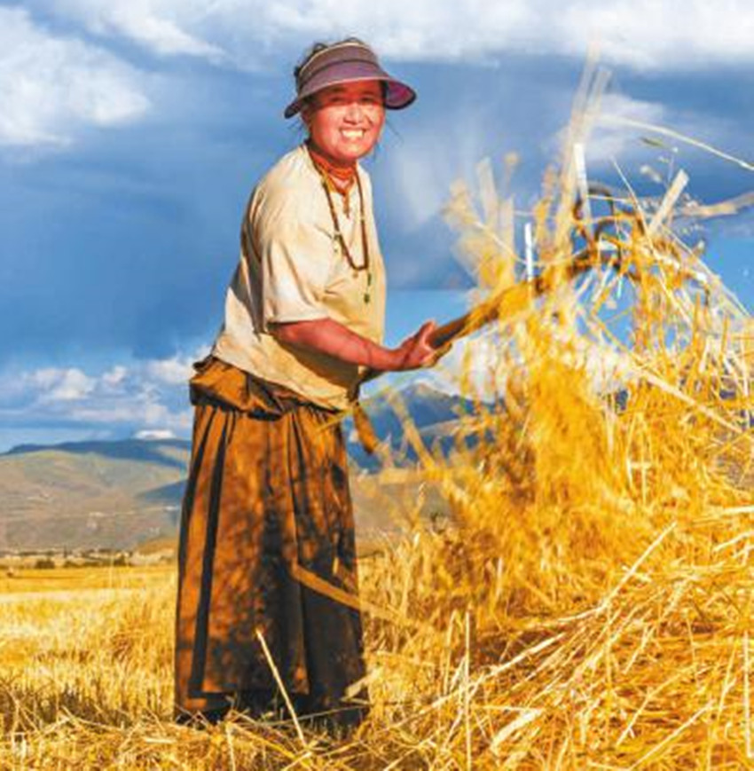 8月,甘孜州逐步進(jìn)入秋收時節(jié),道孚縣、爐霍縣、甘孜縣等地種植的青稞、小麥逐漸成熟,田間地頭是繁忙的收割景象。