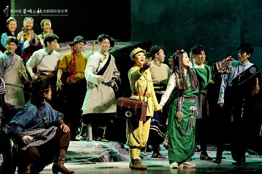 說到《康定情歌》,相信很多人腦海里會(huì)回旋起耳熟能詳?shù)摹傲锪镎{(diào)”。這首歌于1947年首次演唱,并被聯(lián)合國教科文組織列為“全球最具影響力”十首民歌之一。如今,這首傳唱76年的四川民歌,被打造成一部具有甘孜文化特色的原創(chuàng)劇目——歌劇《康定情歌》,并亮相成都城市音樂廳。