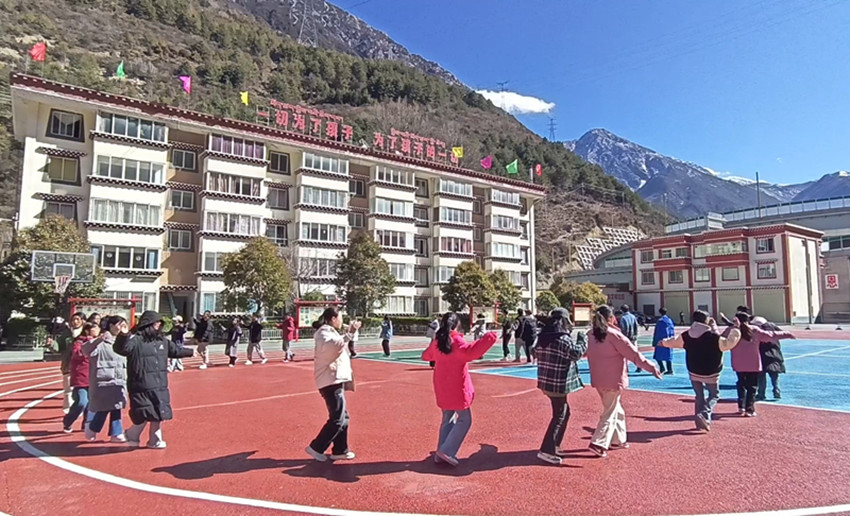 “跑馬溜溜的山上,一朵溜溜的云喲!端端溜溜的照在,康定溜溜的城喲!……”伴隨著《康定情歌》優(yōu)美的旋律,中心里的師生踏著節(jié)拍,擺動(dòng)著手臂,跳起了歡快的鍋莊,大家在歡聲笑語(yǔ)中為愉快而充實(shí)的一天畫(huà)上了圓滿(mǎn)的句號(hào)。