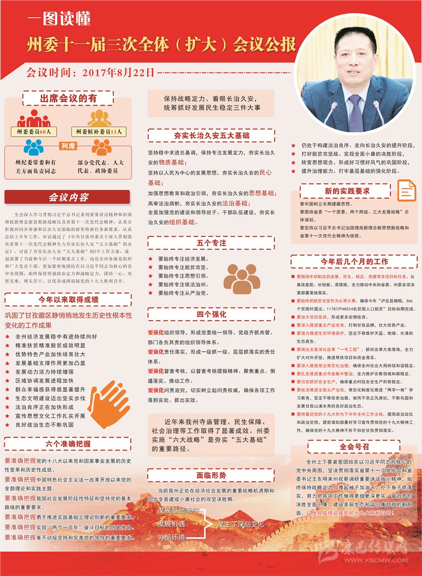 州委十一屆三次全體(擴大)會議審議通過了州委《關(guān)于深入貫徹落實省第十一次黨代會精神全力夯實長治久安“五大基礎(chǔ)”的決定》,向全州廣大黨員干部和各族群眾發(fā)出了“實施‘六大戰(zhàn)略’、夯實‘五大基礎(chǔ)’、確保長治久安”的進軍號令?!拔宕蠡A(chǔ)”之間,緊密聯(lián)系、互為條件、相輔相成、相互牽動、相得益彰、缺一不可。在這“五大基礎(chǔ)”之中,全力夯實長治久安的物質(zhì)基礎(chǔ),則是基礎(chǔ)中的基礎(chǔ),顯得尤為重要和緊迫。