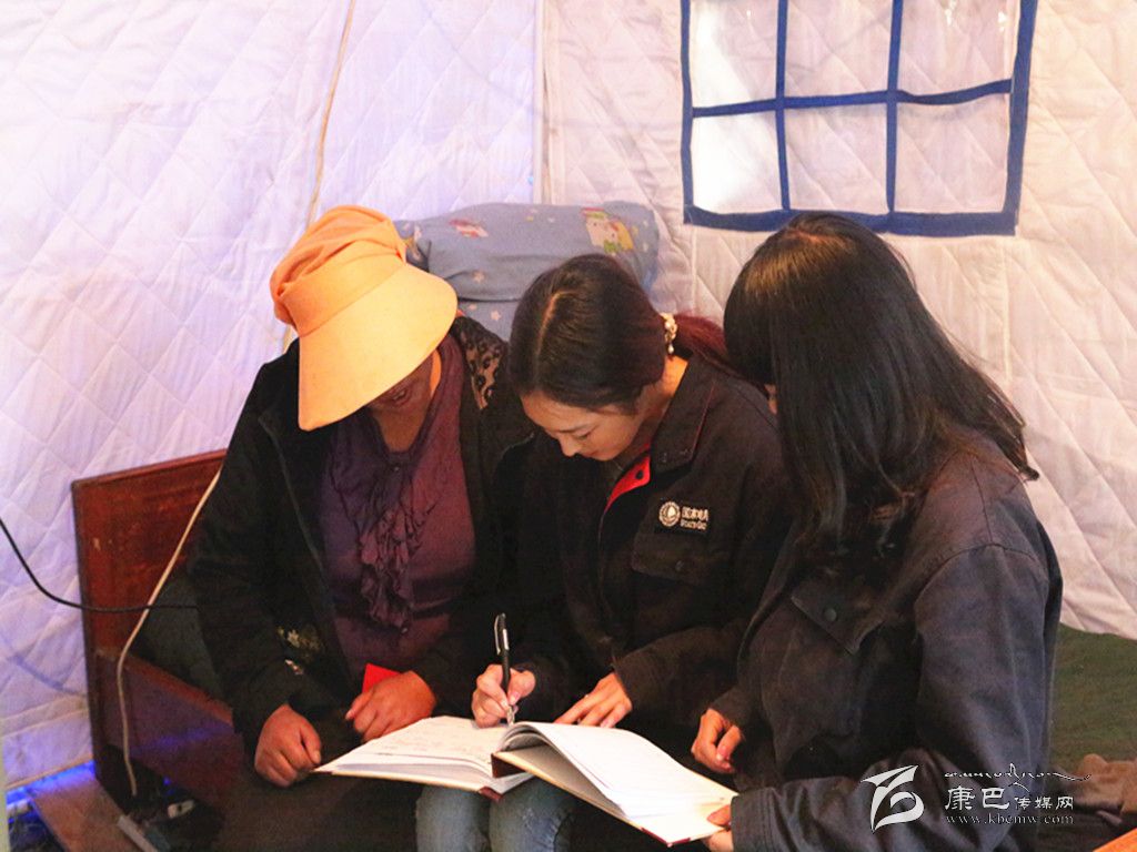 走進救災(zāi)帳篷,澤仁汪清的姐姐古讓看到丹珍拉姆他們的到來,拿出繳費冊如數(shù)繳了電費,感激地對拉姆說:“你們上門服務(wù),讓我們節(jié)約了路費和時間,真是太謝謝你們了!”