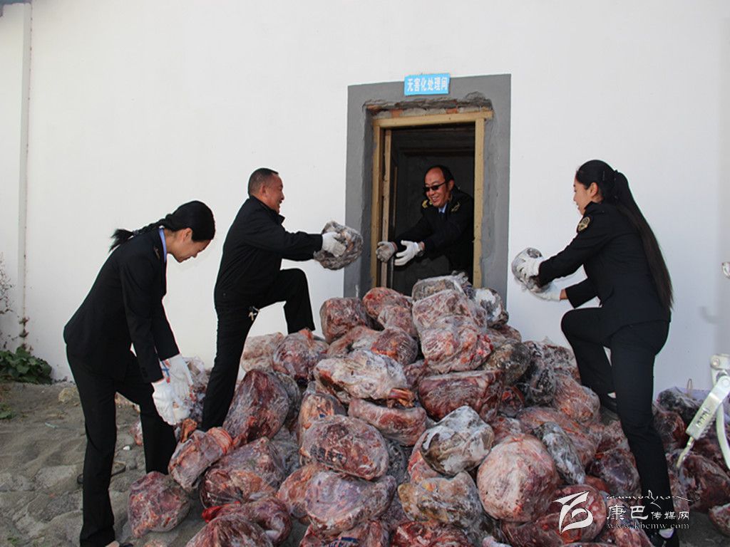 本網(wǎng)訊(周燕 魏麗雯 文/圖)11月17日,康定市在姑咱鎮(zhèn)屠宰場(chǎng)無(wú)害化處理間對(duì)今年4月份以來(lái)開(kāi)展的牦牛肉市場(chǎng)專項(xiàng)整治活動(dòng)中查獲的2000余公斤來(lái)源不明的問(wèn)題牛肉進(jìn)行集中銷毀。
