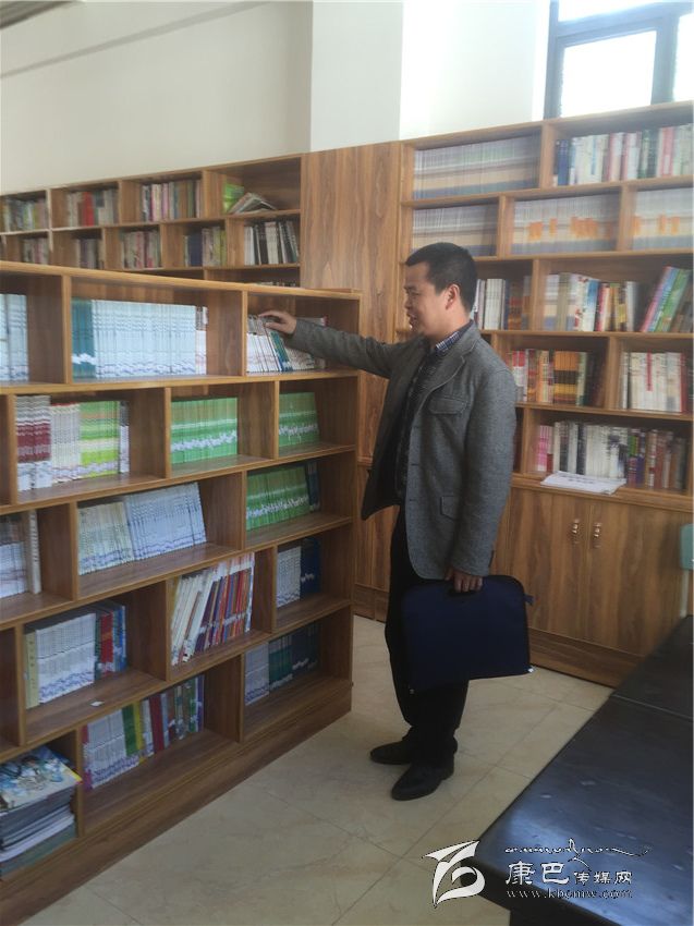 梅紅兵在德格縣一完小整理捐贈(zèng)書(shū)籍。