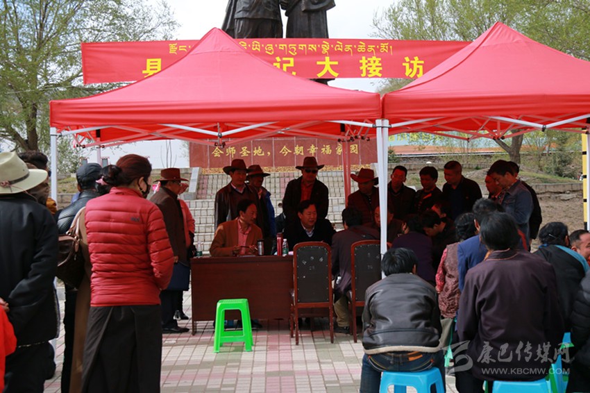 廣場上拉起了一條紅色橫幅,橫幅上書一行字“縣委書記大接訪”。紅色橫幅后面是開國元?jiǎng)字斓潞蛺蹏罘?、大德高僧格達(dá)相互攙扶的雕像。雕像下,該縣各個(gè)局和部門的主要負(fù)責(zé)人都坐在塑料凳上,手里拿著筆記本,等著被該縣縣委書記雷建平“點(diǎn)名”。被點(diǎn)名的單位和負(fù)責(zé)人將和縣委書記一起,就群眾反映的問題,解疑答惑,并當(dāng)場安排落實(shí)。為了多接訪一些群眾,兩天來,午飯時(shí)間,該縣縣委書記和干部都在廣場泡面充饑。