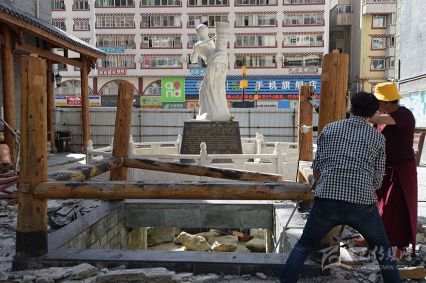 7月5日,夏日艷陽照耀下的康定城中,散步的人們簇?fù)碓谒铀囆g(shù)景觀改造提升施工現(xiàn)場(chǎng)議論紛紛。