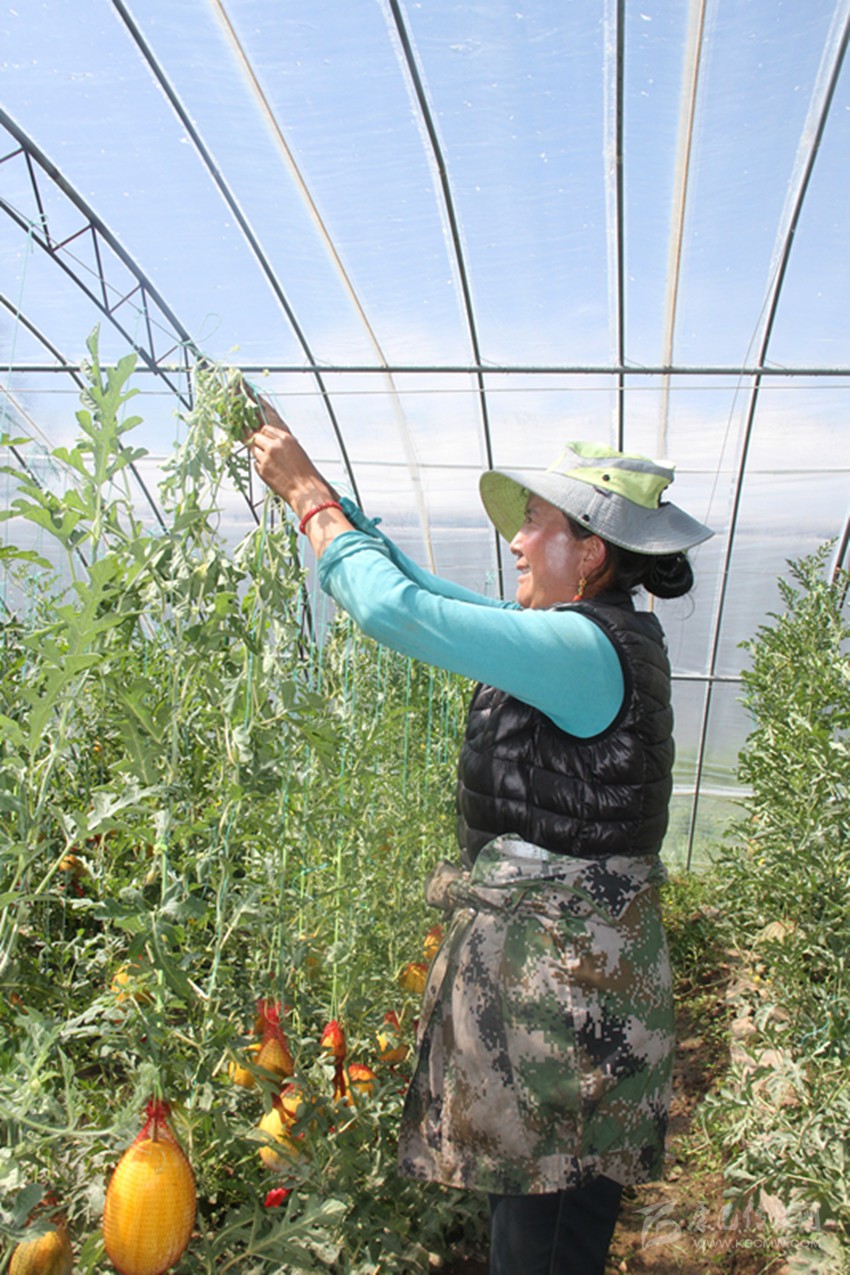 2017年底,澤仁正呷家5口人在“飛地”設(shè)施蔬菜大棚租賃收入分紅1440元,加上她在園區(qū)打工的1萬多元,領(lǐng)取的各項(xiàng)惠民資金,順利實(shí)現(xiàn)脫貧。讓她更高興的是,在家門口不遠(yuǎn)打工,還可照顧家庭?,F(xiàn)在園區(qū)龍頭企業(yè)瑪吉阿米已建成40座3萬平方米冬暖式蔬菜大棚,露地蔬菜生產(chǎn)基地1050畝,種植了大棚西瓜、番茄、彩椒和茄子等蔬菜產(chǎn)品供應(yīng)當(dāng)?shù)丶俺啥嫉鹊厥袌?,年產(chǎn)值達(dá)到300多萬元,帶動(dòng)下依村227人直接受益,20戶貧困戶戶均增收1500元。2017年底,下依村實(shí)現(xiàn)整村脫貧。
