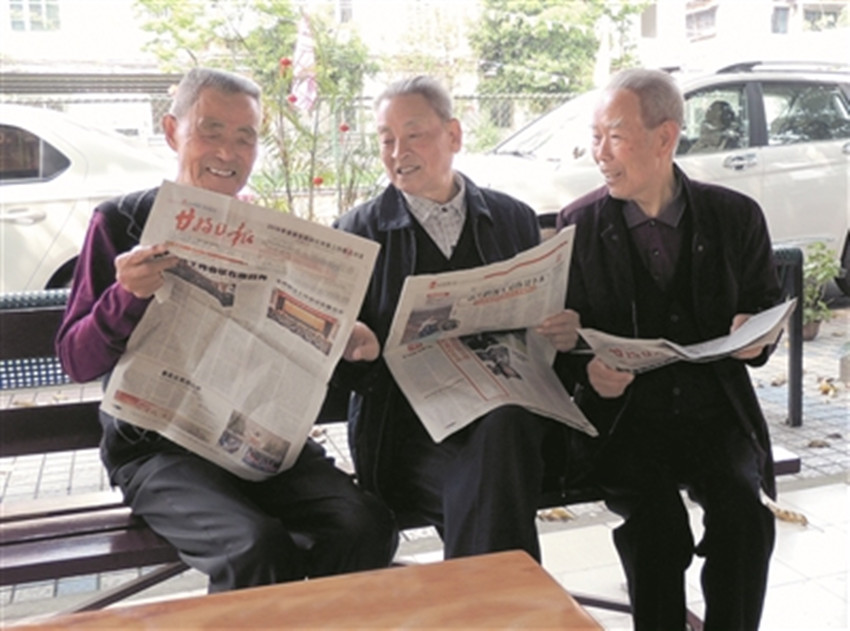本網(wǎng)訊(鄧知 高嬌 文/圖)4月13日上午,甘孜州雅安干休的離退休干部們晨練結(jié)束后,便開始閱報(bào)。今年84歲的離休干部聶庭梅首先翻閱最新的《甘孜日報(bào)》?!耙私庵輧?nèi)新聞,還得通過甘孜日報(bào)。我們雖然退休了,但仍然牽掛曾經(jīng)工作過的甘孜州。退休至今,我都是通過《甘孜日報(bào)》了解第二故鄉(xiāng)發(fā)生的變化?!甭櫷ッ冯x休已經(jīng)有30多年,他對《甘孜日報(bào)》情有獨(dú)鐘,尤其關(guān)注他曾經(jīng)工作過的雅江縣發(fā)生的新聞。