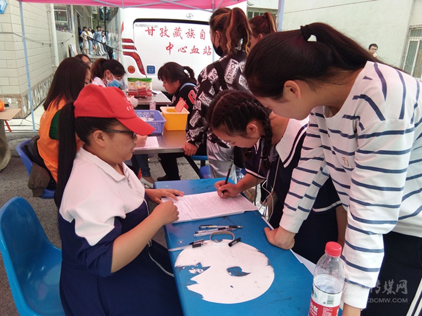 四川民族學(xué)院師生和志愿服務(wù)隊在校園內(nèi)開展無償獻血活動。
