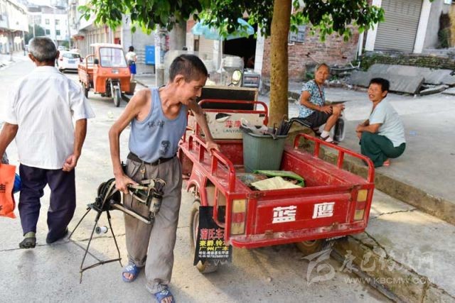 8月15日清晨不到7點,在四川省南部縣中心鄉(xiāng)漏米巖村,周強(qiáng)善正將補鞋工具搬上機(jī)動三輪車,準(zhǔn)備從家出發(fā)去鄰近的長坪鎮(zhèn)集市趕場。攝影 張可凡