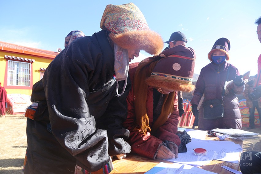 農(nóng)牧民簽字領取新家具。