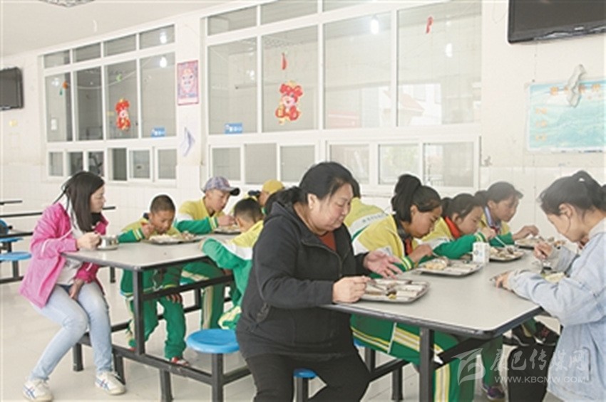 唐關(guān)蓉、馮秀玲兩位老師和學(xué)生一起用餐。