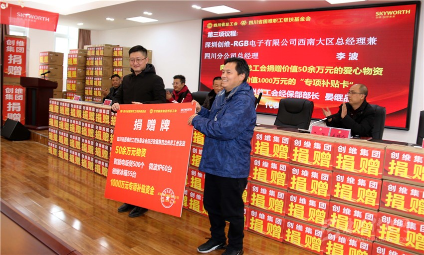本網(wǎng)訊 12月10日,由四川省總工會、四川省困難職工幫扶基金會、甘孜州總工會、創(chuàng)維集團聯(lián)合主辦,康定市總工會、成都創(chuàng)維電器有限公司承辦的“創(chuàng)維公益萬里行、集善幫困暖人心”活動啟動暨愛心捐贈物資康定市發(fā)放儀式在康定舉行,為我州困難職工(農(nóng)民工)捐贈價值50余萬元的愛心物資及價值1000萬元的“專項補貼卡”。