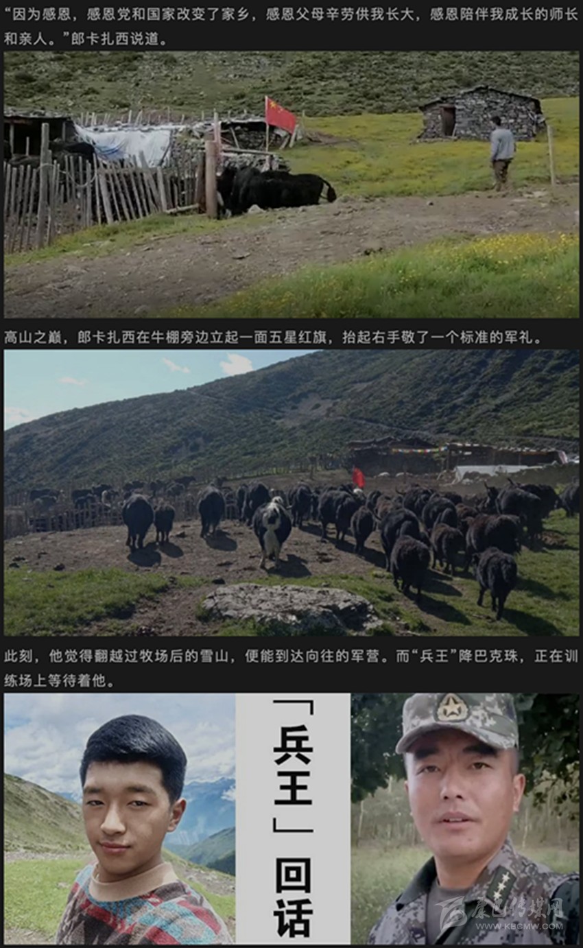 三段視頻,六百多條留言,近兩千萬次播放,一個(gè)藏族少年的軍旅夢(mèng)在網(wǎng)絡(luò)上熱烈綻放,而農(nóng)牧區(qū)許多青年的軍旅夢(mèng)也就此被點(diǎn)燃,忠勇大愛的“血脈”在康巴高原傳承! (本網(wǎng)記者 肖宵 整理)