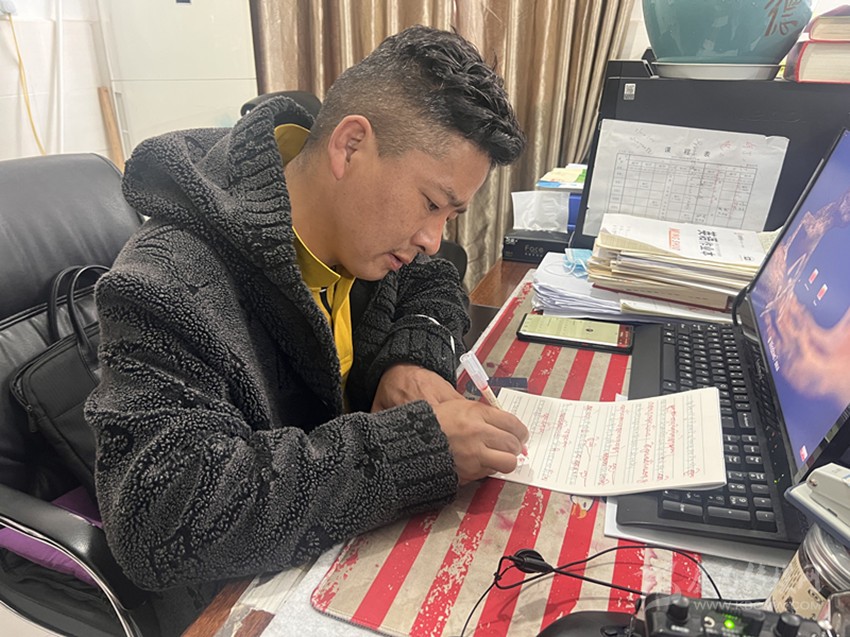 “尼瑪老師不僅對學生的學習生活關懷備至,作為任課教師,我們常常看到他在休息時間認真?zhèn)湔n。他會聲情并茂地大聲誦讀精心準備的課件,大家都覺得很有趣,學生學習的積極性也提高了。他批改作業(yè)也非常認真,給每一位同學寫的評語都用心用情。他是真的是用全部身心來對待工作,不愧是一名優(yōu)秀的老師?!辈稍L過程中,筆者偶遇了援建教師廖俊希,談起對章拉尼瑪?shù)挠∠螅慰∠5脑u價細致而中肯。
