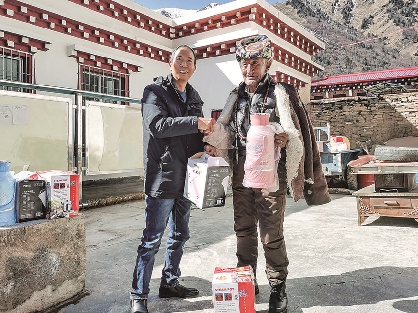 戴林為自己的結(jié)對(duì)“親人”送慰問品。