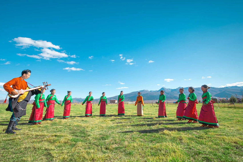 澤仁彭措是位“半路出家”的鄉(xiāng)村音樂教師?!靶r(shí)候就對音樂特別感興趣,但那時(shí)候家里沒條件,很難有機(jī)會(huì)系統(tǒng)地學(xué)習(xí)音樂知識。”長大后,澤仁彭措成為一名教師。工作之余,他始終保持著對音樂的熱愛,自學(xué)了札木聶和弦子等樂器。
