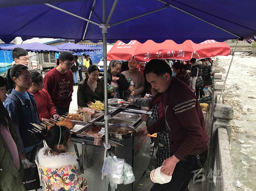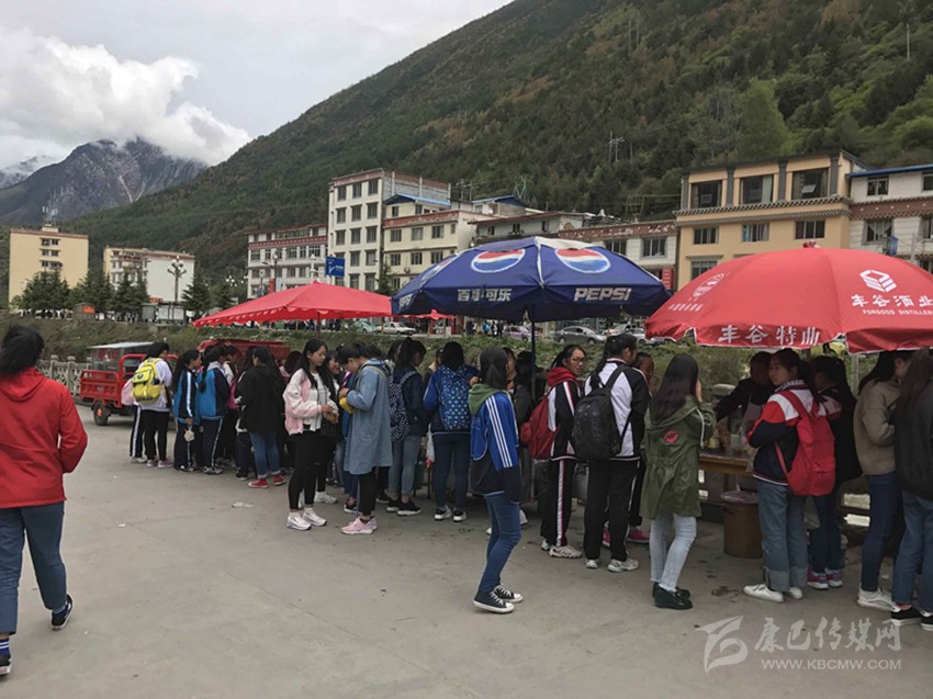 那么真實(shí)情況到底如何呢?7日,記者專門來到康定中學(xué)走訪調(diào)查。記者搭乘出租車前往學(xué)校,途中司機(jī)卻回應(yīng)“康中校門口那一段全是賣炸洋芋、炸雞腿的攤攤,車子根本開不過去,只能提前下車?!碑?dāng)記者步行過橋到達(dá)校門口路段時,雜亂無序而又異常喧鬧的場面立刻映入眼簾。約摸十來家燒烤油炸“流動攤點(diǎn)”上,商販們手中的烤具上下翻飛,幾十名身著“康定中學(xué)”校服的學(xué)生駐足其間,從校門出入的車輛不斷鳴笛避讓。烤面筋、炸土豆、烤雞腿,濃濃的油煙、各種調(diào)料混合的氣味、滋滋的油炸聲……儼然一副“美食街”的火爆景象。