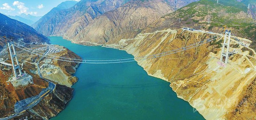 興康特大橋由四川省交投集團(tuán)投資、四川路橋集團(tuán)承建,是一座建設(shè)在高海拔、高地震烈度帶、復(fù)雜風(fēng)場環(huán)境下的超大跨徑鋼桁梁懸索橋。全橋長1411米,主跨長1100米,為四川第一跨徑懸索橋。因其施工難度大,建設(shè)中要克服很多世界難題,也被稱作“川藏第一橋”。
