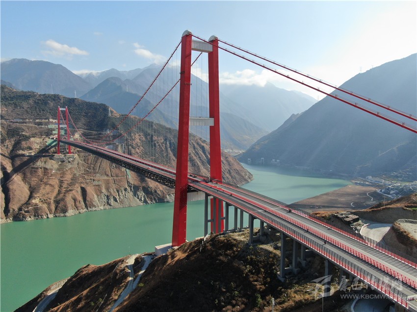 而瀘定大渡河大橋作為雅康高速全線“一橋一隧”重點控制性工程之一,是一座建設在高海拔、高地震烈度帶、復雜風場及溫度場環(huán)境下的超大跨徑鋼桁梁懸索橋,全橋長1411米,主跨1100米,橋面至大渡河水面239米,被譽為“川藏第一橋”。