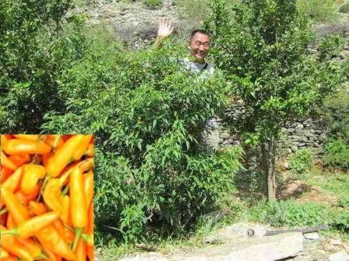特點:因樹干木質化而形成小樹俗稱“樹子海椒”,是多年生植物。最初隨著藏傳佛教的傳入從印度引進,后經當?shù)靥厥獾牡乩砦恢煤蜌夂颦h(huán)境長期栽培選育出的一種原始的地方辣椒品種。該品種頭年以種子育苗移栽,當年開花結果,可以露地越冬,經冬不死,每年春季又可發(fā)生新芽開花結果,植株高可達數(shù)米,葉片披針形,果實短角形,頂端稍尖,成熟后果實金黃鮮亮,其椒果肉薄、辣味濃,可開胃健脾,曾入藏藥,而其樹壽命可長達上百年。