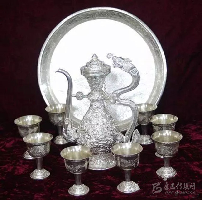 金屬制酒器酒具中關(guān)于銀質(zhì)酒器的說法最多。一種說法是,因為銀離子具有消毒功能,所以青稞酒盛在其中不容易變質(zhì),且口感比較醇。銀質(zhì)酒器還分為精心加工過的和未加工過的兩種,使用兩種器具喝酒時的口感也不同,加工過的口感會更細(xì)膩一些。除此之外,還有木制的。木制的分為純木制和鑲了金銀銅等邊飾的兩種,林芝、昌都地區(qū)因木材資源豐富而使用較為流行,還有有牦牛角或牦牛皮制的、有陶制的,以及現(xiàn)在很常見的玻璃制的等。